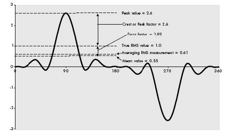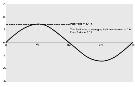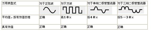 值得注意的是盡管兩種儀表在測量失真波形的時候讀數(shù)不同,而它們在測量純正弦波時卻讀數(shù)一致。這個狀態(tài)就是兩種測量儀的校準(zhǔn)狀態(tài),因而兩個測量儀都可以看作為已經(jīng)校準(zhǔn)過了—僅限用于正弦波。