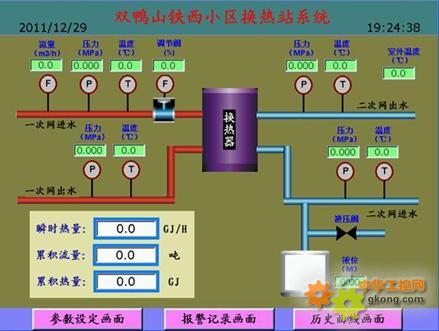 傳統(tǒng)換熱站大多采用人工監(jiān)控,一方面浪費(fèi)人力,另一方面在出現(xiàn)事故隱患時(shí)操作人員難以發(fā)現(xiàn),易造成熱力失衡,影響供熱效果,還會(huì)造成能源的極大浪費(fèi)。如在換熱站中引入PLC、觸摸屏及上位監(jiān)控系統(tǒng)等自控設(shè)備,可對(duì)現(xiàn)場(chǎng)設(shè)備實(shí)時(shí)監(jiān)測(cè)和控制,不僅大大提高了工作效率,降低了故障發(fā)生率,還使控制過(guò)程更加直觀、調(diào)節(jié)和控制更加方便。