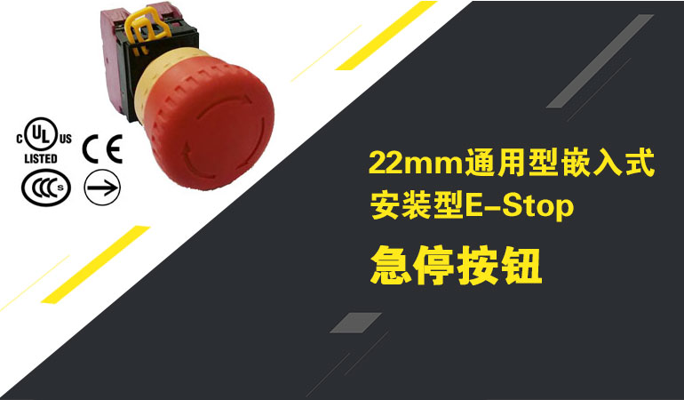 22mm為市場通用型嵌入式安裝急停按鈕型號。 其外形緊湊, 結構簡單,經濟實用, 符合國際各項安全標準。 主要針對: 電子行業,包裝行業,盤柜制造, 機床, 以及各類非標輕工類機械制等等相關行業。