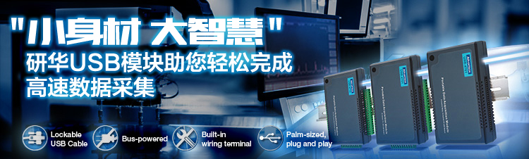 研華USB數據采集模塊采用強固型設計,小巧輕便,無需額外電源且允許熱插拔,即插即用,方便快捷。使用USB數據采集系列產品,可以任意匹配工業電腦平臺,是智能工廠與生產測試測量的U質選擇。