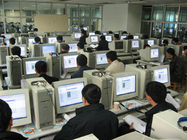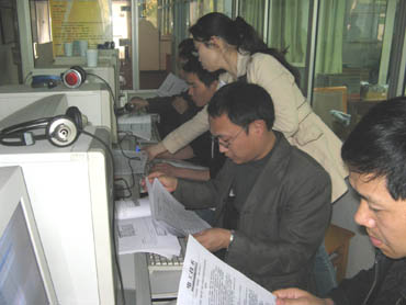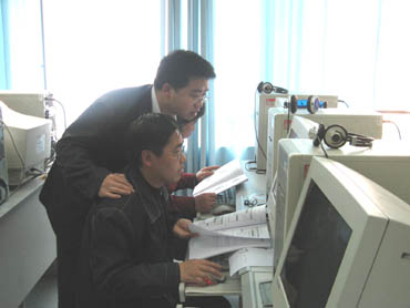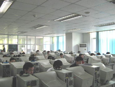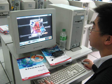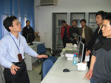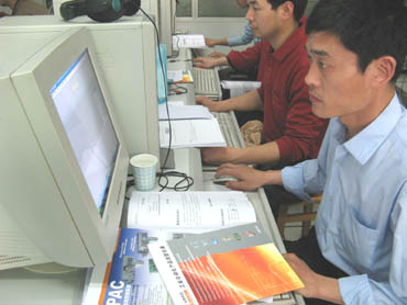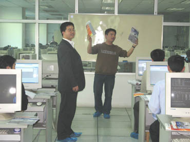 學員們每人一臺電腦,參看教材在王建軍工程師的細致指導(dǎo)下認真地學習。 |