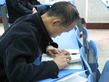 課間休息時這位學員還在補記筆記 |