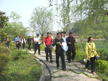 跟著導(dǎo)游的講解欣賞湖光山色