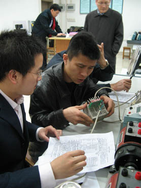 學員們在重慶大學實驗室實際操作PLC設(shè)備 |