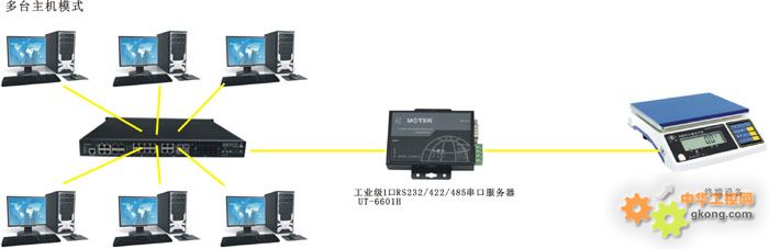 許多情況下多個用戶需要共享來自同一串口的數據資源,此時需要多臺主機能夠訪問同一串口設備聯網服務器。UT-6601H能夠根據用戶的需求工作在這種工作模式,允許多臺主機分時訪問同一串口。