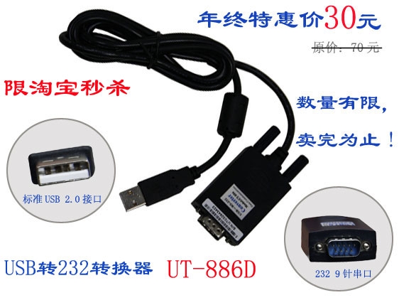 為答謝廣大新老客戶多年來對我司的支持,年終特惠供應回饋消費者從即日起,宇泰科技在官方淘寶店將各系列接口轉換器特惠供應,UT-886D USB轉RS232轉換器原價70元直降低至30元/條,另有其他型號可咨詢客服人員,數(shù)量有限,欲購從速,賣完為止!