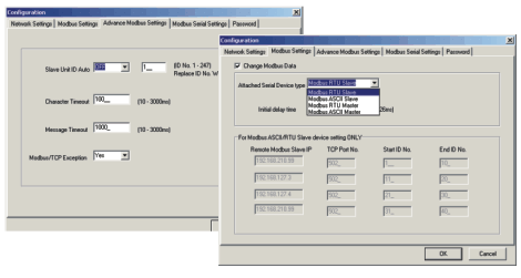 為了進(jìn)行 Modbus協(xié)議的轉(zhuǎn)換,有必要定義從社別,但與其他Modbus網(wǎng)關(guān)不同的是, NPort 6110 允許用戶對以太網(wǎng)和串口來配置主從設(shè)備。額外的地址映射和以外的參數(shù)被用來確保所有的情況都能夠處理。