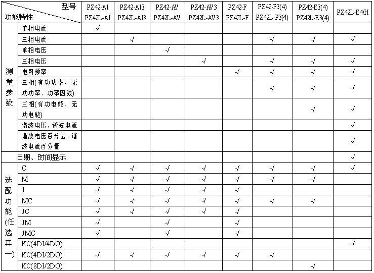 2、PZ96(L)-E3(4)在選配KC(4DI)功能時具備1路有功電能脈沖信號輸出端口,在選配KC(2DI/2DO、4DI/2DO)功能時無脈沖信號輸出端口;