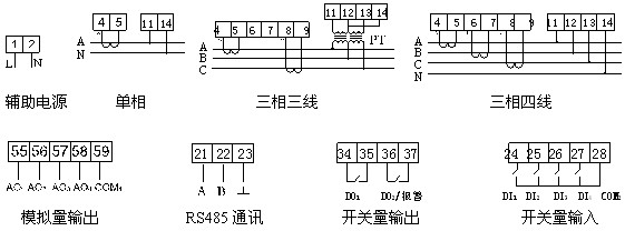 儀表可具有RS-485 通訊接口,采用Modbus-RTU 協(xié)議;可帶模擬量輸出、繼電器報警輸出、開關(guān)量輸入/輸出。根據(jù)不同要求,通過儀表面板按鍵,對變比、報警、通訊、開關(guān)量輸出進行設(shè)置與控制。