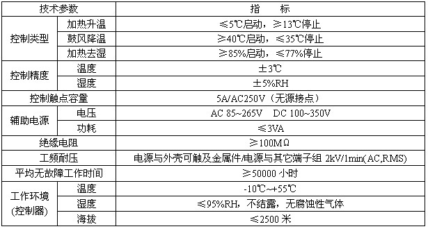 ● 控制器常規為環境濕度≥85%RH加熱除濕控制啟動,溫度≤5℃加熱升溫控制啟動,≥40℃鼓風降溫控制啟動;