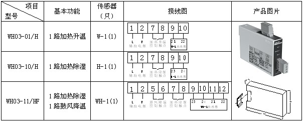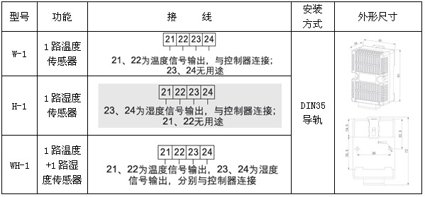 ●W-1為溫度傳感器,H-1為濕度傳感器,WH-1為溫濕度傳感器,控制器型號選定后已經包括傳感器,無需另行選定;