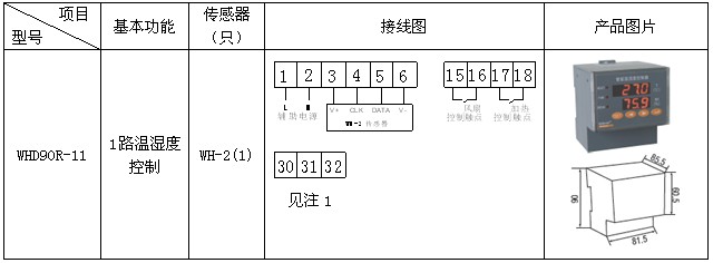 1、WHD48、WHD72、WHD90R最多可接1路溫濕度傳感器;