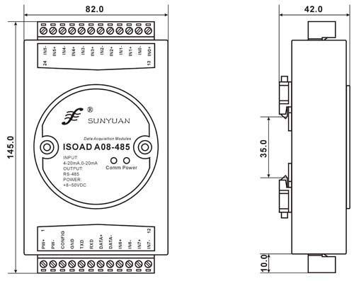 產(chǎn)品包括電源隔離,每通道的信號(hào)隔離,A/D轉(zhuǎn)換和RS-485串行通信。每個(gè)串口最多可接255只ISOAD A08系列模塊,支持兩種通訊協(xié)議,命令集定義的字符協(xié)議和MODBUS RTU通訊協(xié)議,其指令集兼容于ADAM模塊,波特率可由代碼設(shè)置,能與其他廠家的控制模塊掛在同一RS-485總線上,便于計(jì)算機(jī)編程。