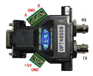 波仕電子配套提供各種長度單芯、雙芯光纖以及ST、FC、SC接頭。 注意RS-232與RS-485不要同時使用。OPT485S9產(chǎn)品配套有5V電源(4.5 V到5.5V),產(chǎn)品功耗小于100mA。
