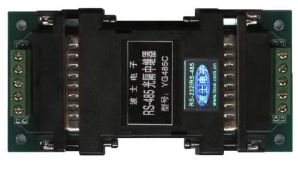 在RS-485通信線上串接一個中繼器,則可延長1.2Km(9600bps時)。在RS-485通信線上串接一個YG485A(或YG485TA)能夠使RS-485的帶負載能力增加到128個。YG485A、YG485TA支持最高通信速率一般為9600bps。同時具有吸收浪涌電流的抗雷擊保護功能。由于YG485A(或YG485TA)獨有內部零延時智能收發轉換技術,所以確保適合所有半雙工通信軟件。