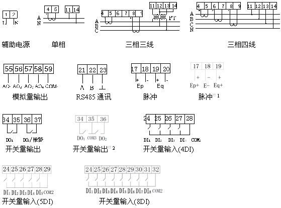 注1:適用于單相電能表及開關(guān)量為8DI/2DO的場合;