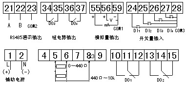儀表可具有RS-485 通訊接口,采用Modbus-RTU 協(xié)議;可帶模擬量輸出、繼電器報警輸出、開關(guān)量輸入/輸出。根據(jù)不同要求,通過儀表面板按鍵,對變比、報警、通訊、開關(guān)量輸出進(jìn)行設(shè)置與控制。