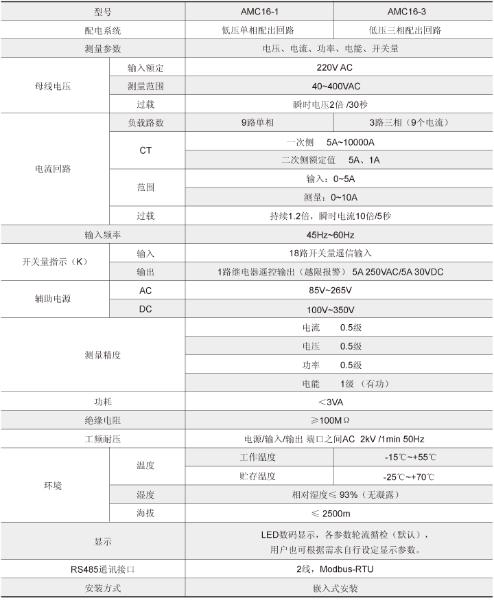 測量參數:3路三相電流、母線電壓、3路三相功率和電能(含分元功率)、18路開關狀態檢測和1路越限報警輸出
