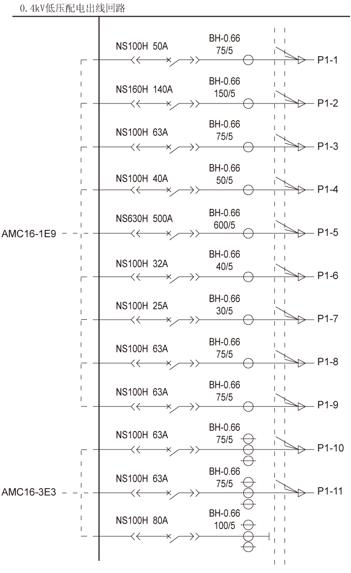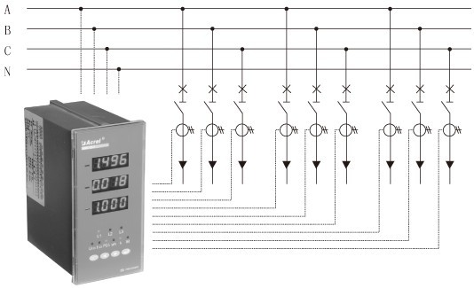 AMC16多回路監控裝置主要應用于多個配出回路的電參數的監測,它將回路中的母線電壓、多個配出回路的電流、功率、電能集中測量和顯示,并可對各個回路的開關狀態集中監測和顯示,以上各參量還可通訊輸出,實現了對監控要求較簡單的配電出線回路的集中測量和監視。一個AMC16多回路監控裝置就能實現對多個回路的電參量的測量和開關狀態的監測,大大方便了系統的接線、安裝、調試;節約了用戶的投資,降低了系統成本。