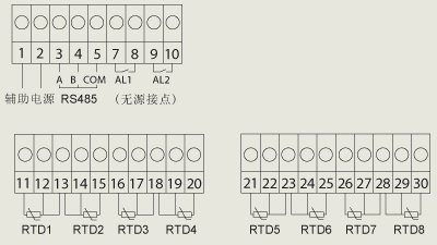2組繼電器報警輸出,分別對應2段溫度報警;