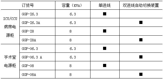 醫用隔離電源柜是針對醫療2類場所的供電需求而設計的具有局部IT系統的配電柜,IT系統裝設絕緣監測裝置來監測系統的絕緣狀況,各輸出回路采用了具有短路保護功能的斷路器;其它系統輸出回路則采用了具有漏電保護功能的斷路器。產品根據使用場所的不同分為GGF-O系列手術室用隔離電源柜和GGF-I系列ICU/CCU等病房用隔離電源柜兩大類,能夠很好的滿足各類手術室和重癥監護室對電源安全性和可靠性的要求,并符合GB16895.24-2005/IEC60364-7-710:2002《建筑物電氣裝置第7-710部分:特殊裝置或場所的要求—醫療場所》和GB7251.1-2005/IEC 60439-1:1999《低壓成套開關設備和控制設備》等標準