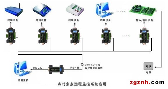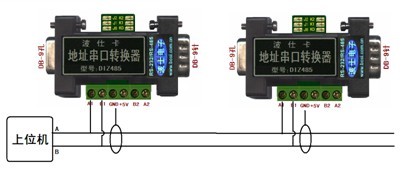 在同一個RS-232/RS-485總線中可以同時接入一般最多8個DIZ485產品,定制最多可以到32個。使用時將這8個產品的地址分別設置為0、1、2、……、7不同的值。將所有DIZ485產品的主串口共同接入到一個總線并接到上位機的RS-232或RS-485口。