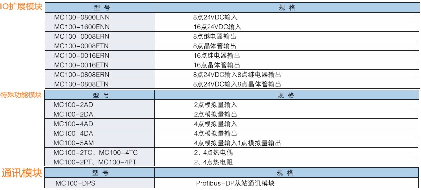 MC100系列是一款微型高性能PLC,結(jié)構(gòu)小巧,功能強大。具有數(shù)據(jù)處理、模擬量處理、網(wǎng)絡(luò)通信功能,高速計數(shù)和脈沖輸出定位控制功能,還具有浮點運算和寫EEPROM指令高級功能。已廣泛應(yīng)用于沖床、紡織設(shè)備、線纜拉絲、包裝、建筑機械、磚機石材、電子設(shè)備、制藥設(shè)備等行業(yè)。