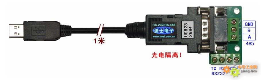 新一代波仕USB232GH4高速光電隔離微型USB/串口轉換器具有超小型的外形、RS-232、RS-485通用,可以虛擬成為本地COM串口(COM1-COM256)、實現2500V光電隔離、支持0~460.8Kbps速率的RS-232通信和0~1228.8Kbps的RS-485通信。無須修改已有的串口通信軟件。專利產品,謹防假冒!