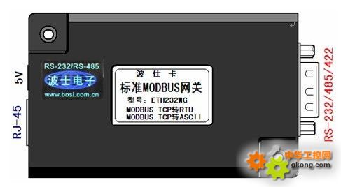 標準MODBUS網關 ——實現MODBUS TCP與RTU/ASCII轉換 波仕ETH232WG標準MODBUS網關實現以太網MODBUS TCP協議與串口MODBUS RTU協議、以太網MODBUS TCP協議與串口MODBUS ASCII協議之間的相互轉換。ETH232WG同時還是一個以太網/串口轉換器。它具有超小型的外形(80*25*55mm)、RS-232、RS-485、RS-422通用,可以通過以太網-串口映射程序虛擬成為本地COM串口。ETH232WG是世界上最小的、也是使用最簡便的MODBUS網關。 ETH232WG內部還帶高速光電隔離,實現了以太網、電源、串口的三方隔離。專利產品,謹防假冒! 專利號:200630307752、200730098650 ETH232WG | 標準MODBUS網關 | 5V供電(5-24V) | 0-115.2Kbps |