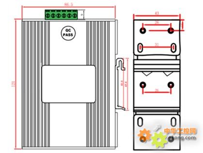網口:10/100Mbps,RJ45,電磁隔離;尺寸(寬x高x深):43x117x86.5mm |
