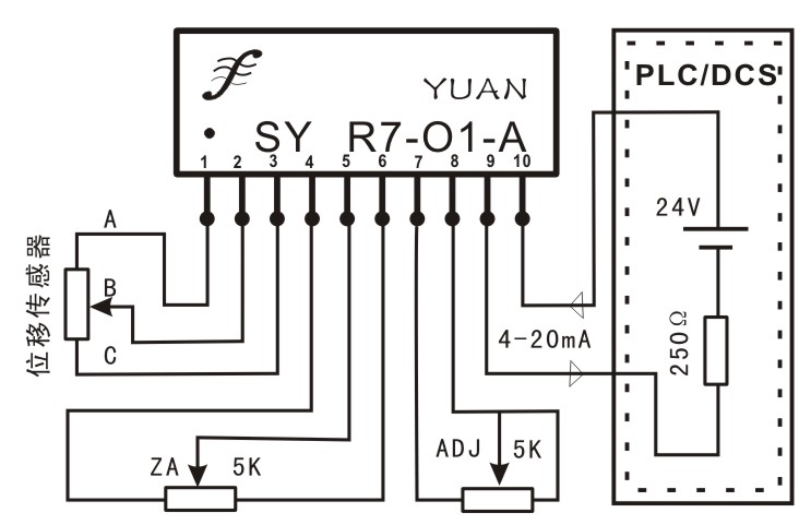 三、非隔離型SY R-P-O(Sip10 Pin) 電阻信號轉換放大器 IC 位移信號轉換放大器SY R-P-O系列產品,可將直線或角位移傳感器輸出信號進行高精度放大并轉換成標準的兩線制4-20mA模擬信號,滿度和零點都可由用戶通過外接電位器調節、校準。1、電阻信號非隔離放大器SY R-P-O產品典型應用圖