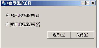“U盤寫保護工具”首次“應用(A)”“啟用U盤寫保護(E)”時,要求先斷開U盤連接再插入,而“禁用U盤寫保護(D)”卻不需要重新插入。這個“U盤寫保護工具”軟件的實質是對WINDOWS注冊表中的USB存儲器的寫保護屬性進行修改,是一個綠色軟件。