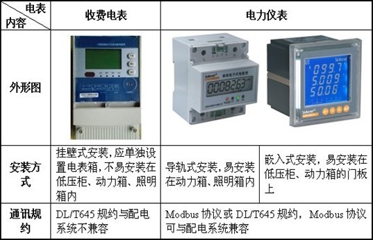 供電部門一般給用戶實(shí)施一戶一表的收費(fèi)制度,即收費(fèi)電表由供電部門統(tǒng)一安裝。因此,收費(fèi)電表除了要有技監(jiān)局發(fā)放的計(jì)量器具許可證外,還需要當(dāng)?shù)厥 ⑹须娏Σ块T的許可才可安裝使用。在大型公共建筑電能管理中,供電部門一般會(huì)在總進(jìn)線處安裝收費(fèi)電表。 電力儀表在用戶安裝收費(fèi)電表的基礎(chǔ)上,考慮內(nèi)部電能計(jì)量與節(jié)能管理的需要安裝,用于內(nèi)部電能管理。因此用戶可自主選擇采購,但應(yīng)注意制造商是否有電力儀表(電能部分)的計(jì)量許可證。電力儀表可以完成對(duì)各回路、各樓層或各功能區(qū)的分項(xiàng)電能數(shù)據(jù)的采集,通過后臺(tái)電能管理系統(tǒng)完成對(duì)大型公共建筑的電能分項(xiàng)計(jì)量。 2、電力儀表在電能分項(xiàng)計(jì)量中的選型方案 電力儀表,是針對(duì)電力系統(tǒng)、工礦企業(yè)、公用設(shè)施、智能大型公共建筑的電力監(jiān)控與電能管理需求而設(shè)計(jì)的。它能高精度的測量所有常用的電力參數(shù),如三相電壓、三相電流、有功功率、無功功率、頻率、功率因數(shù)、四象限電能等,采用可視度高的LCD來顯示儀表測量參數(shù)和電網(wǎng)系統(tǒng)的運(yùn)行信息。電力儀表功能、型號(hào)繁多,價(jià)格也各不相同,電能計(jì)量方案也多種多樣,因此,應(yīng)合理選配,達(dá)到較佳的性價(jià)比。 根據(jù)住房和城鄉(xiāng)建設(shè)部114號(hào)文件,對(duì)大型公共建筑能耗數(shù)據(jù)實(shí)行分類、分項(xiàng)計(jì)量,對(duì)電能按動(dòng)力用電、照明與插座用電、空調(diào)用電和特殊用電進(jìn)行分項(xiàng)計(jì)量管理[1]。因此,針對(duì)宿舍、商鋪、病房等應(yīng)計(jì)量到經(jīng)濟(jì)核算單元的地方,可采用DDS1352或DDSF1352電表; DDS1352單相電表,又稱為ADL10;單相電能計(jì)量表,DIN35mm導(dǎo)軌安裝,寬度為1個(gè)模數(shù)(即寬為18mm),一次最大接入單相電流30A,精度1.0級(jí)。優(yōu)點(diǎn)是尺寸小,價(jià)格低,缺點(diǎn)是沒有通訊功能,不能組網(wǎng)。 DDSF1352單相電表,又稱為ADL100,同樣為DIN35mm導(dǎo)軌安裝,寬度為4個(gè)模數(shù),一次最大接入單相電流為80A,精度1.0級(jí),具有峰、平、谷電能分時(shí)復(fù)費(fèi)率計(jì)量功能,帶RS485接口,Modbus協(xié)議或DL/T645規(guī)約,可組網(wǎng)。主要應(yīng)用于對(duì)單相電能的計(jì)量,常用在配電箱內(nèi)。DDS1352及DDSF1352單相電表外形及應(yīng)用如圖1所示: