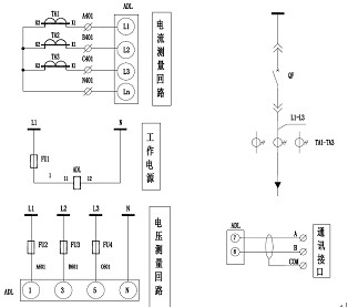 一次輸入0-80A,測量相電壓、線電壓、電流、有功功率(分相與合相)、無功功率(分相與合相)、視在功率(分相與合相)、功率因數(分相與合相)等;四象限電能計量 |