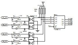 外部開關信號采集使用光耦(IC1,IC2只畫出其中四路)作電器隔離,光耦輸出端使用一個數據緩沖器74HC244(IC9)對光耦輸出信號進行緩沖后傳送到CPU的數據總線供CPU讀取。(見圖6)