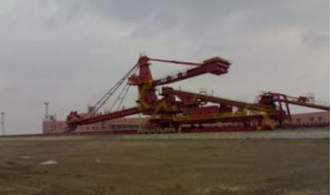 太倉港武港碼頭的一部分為散裝物料堆場,其堆取設(shè)備使用的是大型斗輪式取料機。