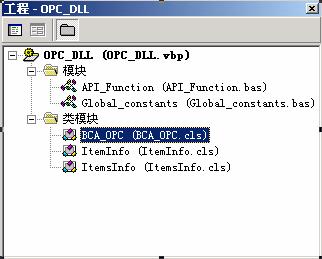 類型設計為ActiveX Dll,名稱:OPC_Dll.dll,可以在VB工程[引用]中加載,加載后通過創建類BCA_OPC的實例來實現OPC數據通訊,BCA_OPC的調用功能如下: