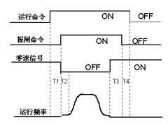 最佳的控制時(shí)序如圖2所示,變頻器接收到運(yùn)行命令后,先進(jìn)入零速運(yùn)行過(guò)程,延時(shí)T1,保證電機(jī)勵(lì)磁達(dá)到穩(wěn)態(tài)后打開(kāi)報(bào)閘,同時(shí)變頻器開(kāi)始運(yùn)行啟動(dòng)速度的啟動(dòng)速度保持時(shí)間T2后是高速、低速到零速,零速運(yùn)行T3后,在保證慣性影響為零的情況下,關(guān)閉報(bào)閘,由于報(bào)閘抱緊需要一定時(shí)間,因此必須延遲T4后撤消運(yùn)行命令。按照此時(shí)序,可以保證啟動(dòng)和停車均有理想的舒適感。在艾默生TD3100變頻器中,T1由F7.00設(shè)定,T2由F3.01設(shè)定,T3由F7.01設(shè)定,T4由控制決定,如果控制器延遲時(shí)間不夠,TD3100變頻器將自動(dòng)延長(zhǎng)命令保持時(shí)間。
