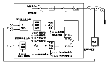 對(duì)于1.75m/s以下的中低速電梯,由于運(yùn)行速度較低,基本不需要啟動(dòng)補(bǔ)償就可以達(dá)到比較滿意的程度。對(duì)于1.75m/s以上的中高速電梯,如果啟動(dòng)舒適感要求比較高的場(chǎng)合,就必須添加稱重裝置,進(jìn)行啟動(dòng)轉(zhuǎn)矩的補(bǔ)償。一般有兩種稱重裝置,開(kāi)關(guān)量檢測(cè)和模擬量檢測(cè)方式。對(duì)于開(kāi)關(guān)量檢測(cè)具有成本低,但只能夠做到有級(jí),一般安裝4個(gè)開(kāi)關(guān),可以在空載和滿載之間實(shí)現(xiàn)任意4點(diǎn)的準(zhǔn)確補(bǔ)償,但是由于是有級(jí)補(bǔ)償,還不能夠做到理想的程度。模擬量傳感器可以實(shí)現(xiàn)無(wú)級(jí)補(bǔ)償,但是存在的問(wèn)題是模擬量傳感器往往隨著電梯的使用,其輸出會(huì)發(fā)生偏移,造成補(bǔ)償錯(cuò)誤,效果有時(shí)會(huì)比不補(bǔ)償還差,因此需要定期對(duì)補(bǔ)償增益進(jìn)行調(diào)整。艾默生TD3100電梯專用變頻器啟動(dòng)轉(zhuǎn)矩補(bǔ)償原理如圖所示