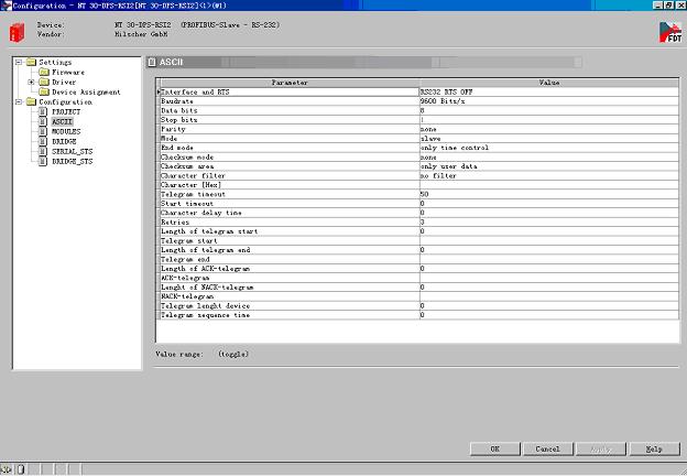 1、 ASCII參數頁:Parity=none;Telegram timeout=50;