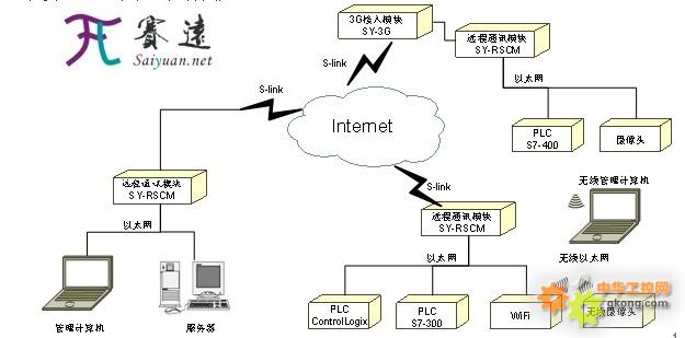 用戶可以根據不同的設備數量和內在的控制器等系統,以及不同的預算,選擇建立不同等級的運行保障中心,小型的保障中心僅需10多萬元RMB即可投資建立,這個對于公司提升企業的信息化水平有著十分重要的意義。 四、 遠程保障中心的通訊系統推薦配置 賽遠的遠程PLC安全通訊系統,如果是考慮工程師的出差便利性,可以采用如下配置: 1、 西門子PLC側配上SY-RSCM300的遠程安全通訊模塊,SY-3G的3G上網模塊; 2、 工程師站配上SY-RCS軟件;