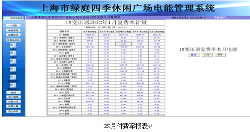 報表可以查詢所有回路任意時間間隔段所用的電度數(shù),同時報表具有打印及導(dǎo)出功能