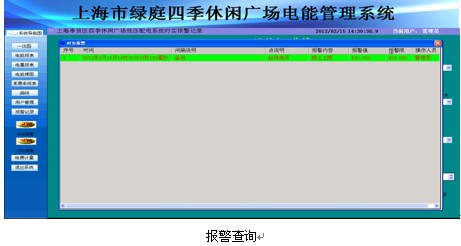 上海安科瑞公司根據(jù)上海四季廣場實際情況為其選用了ACREL-3000電能管理系統(tǒng)。該系統(tǒng)以智能電力監(jiān)控裝置、微機繼電保護裝置、計算機網(wǎng)絡(luò)、能量管理應(yīng)用組態(tài)軟件為基礎(chǔ),滿足中國電力行業(yè)規(guī)范及相關(guān)行業(yè)標準,采用完全分層分布式結(jié)構(gòu),是一種智能化、網(wǎng)絡(luò)化、單元化、全開放的能量管理系統(tǒng)。本系統(tǒng)根據(jù)低壓能量管理的特點,完成對變配電系統(tǒng)的數(shù)據(jù)采集、運行監(jiān)視、事故預(yù)警、事故記錄和分析、自動控制、繼電保護等功能,同時把能耗預(yù)警、電源質(zhì)量管理系統(tǒng)融為一體,極大提高了用電的可靠性、安全性、管理水平,是一個面向用戶的、真正的能量管理系統(tǒng)。