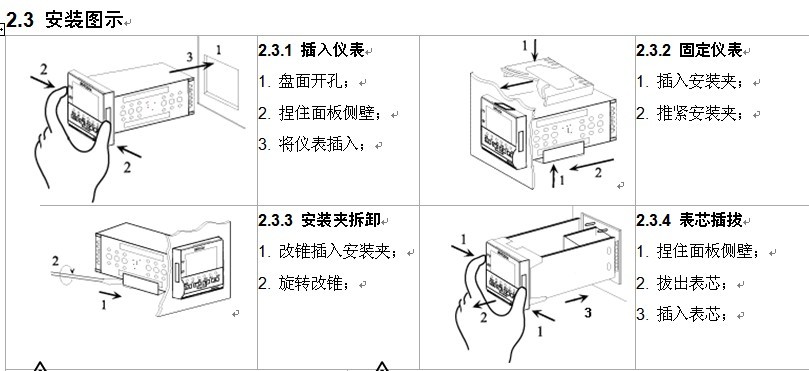 · 為防止觸電或出現故障,拔出表芯前必須關斷儀表電源;