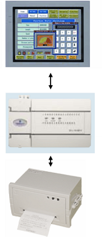 整套系統(tǒng)由艾默生EC10-1614BTA,煒煌微型打印機(jī)WH 和觸摸屏組成。EC10通過(guò)并口與微型打印機(jī)連接,控制選通信號(hào),然后把要打印的數(shù)據(jù)轉(zhuǎn)換成16進(jìn)制通過(guò)8根數(shù)據(jù)線輸入到打印機(jī)。Plc編程序時(shí),根據(jù)打印機(jī)時(shí)序圖確定選通信號(hào)和數(shù)據(jù)的時(shí)序。