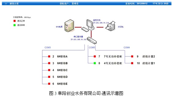安科瑞電氣股份有限公司于2012年8月承接了阜陽創(chuàng)業(yè)水務(wù)智能配電監(jiān)控系統(tǒng)項目,為該項目定制的電力監(jiān)控系統(tǒng)為Acrel-2000。該電力監(jiān)控系統(tǒng)是在阜陽創(chuàng)業(yè)水務(wù)有限公司原有變配電柜基礎(chǔ)上增加帶通訊接口的安科瑞多功能網(wǎng)絡(luò)電力儀表,將電網(wǎng)用電參數(shù)遠傳至監(jiān)控中心,從而實現(xiàn)集中遠程監(jiān)控和管理的一個高低壓配電改造項目。通過對現(xiàn)有10KV變配電所實施改造,建立一套比較規(guī)范的變配電所電力監(jiān)控系統(tǒng),以便于掌握進線供電質(zhì)量、故障情況、廠內(nèi)負(fù)荷變化等,提高變電所運行的安全性,同時監(jiān)控中心進行數(shù)據(jù)采集與存貯、數(shù)據(jù)統(tǒng)計與分析、數(shù)據(jù)發(fā)布與遠傳;以實時監(jiān)測電網(wǎng)數(shù)據(jù)為依據(jù),為阜陽創(chuàng)業(yè)水務(wù)有限公司的能源監(jiān)控與節(jié)能提供有效手段,實現(xiàn)有效節(jié)能并提高能源管理水平。