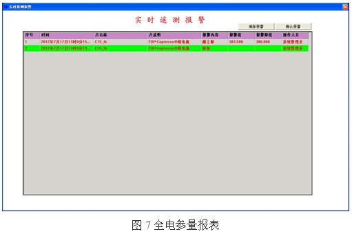 系統提供了實時曲線和歷史趨勢兩種曲線分析接口,通過調用相關回路實時曲線接口分析該回路當前的負荷運 行狀況。如通過調用某配出回路的實時曲線可分析該回路的電氣設備所引起的信號波動情況。系統的歷史趨勢即系統對所有已存儲數據均可查看其歷史趨勢,方便工程人員對監測的配電網絡進行質量分析。