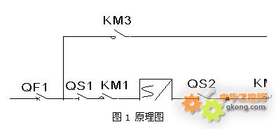 變頻運行:QF1、KM1、KM2、KM6吸合,KM3、KM6、KM5、KM7斷開,電機M1變頻運行。