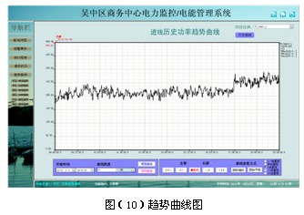 負荷趨勢曲線功能主要負責定時采集進線及重要回路電流和功率負荷參量,自動生成運行負荷趨勢曲線的,方便用戶及時了解設備的運行負荷狀況。點擊畫面相應按鈕或菜單項可以完成相應功能的切換;可以查看實時趨勢曲線或歷史趨勢線;對所選曲線可以進行平移、縮放、量程變換等操作,幫助用戶進線趨 勢分析和故障追憶,為分析整個系統(tǒng)的運行狀況提供了直觀而方便的軟件支持。