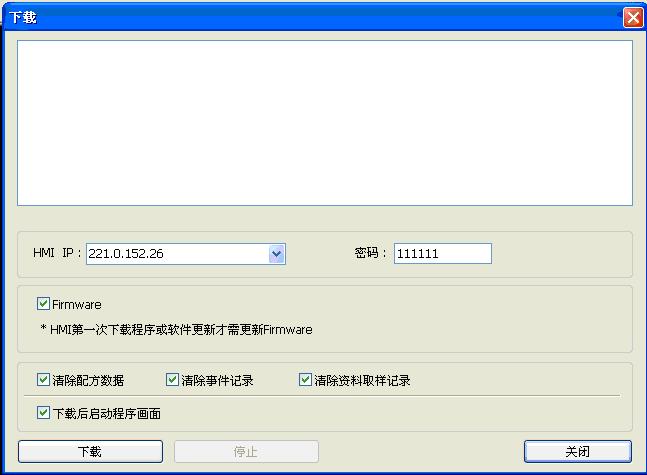 MT8000系列人機帶有以太網接口,通過Ethernet網絡,可以實現對遠程人機或者PLC數據的監控,同時也可以實現對遠程MT8000人機下載程序。 MT8000遠程監控系統的結構圖如下:  其中,MT8000人機上可以連接多種控制器。 實現MT8000的遠程監控功能,首先要對被訪問的MT8000人機所在的局域網的路由器進行設置,方法如下: 1.MT8000的IP設置 觸摸機器的右下角,會在機器底部出現一條工具欄,左面有4個圖標,如圖示  點擊第四個“System Setting”圖標,輸入密碼后(默認密碼111111),出現如下圖所示對話窗口: 在“Netword”一欄中,設定機器的IP地址,完成后保存確定即可。建議設定后重啟一下機器再下載程序。 同時,在EB8000軟件中,設置MT8000的端口號,如下圖所示,可以設為8000.  2.路由器的設置 通過設置路由器,將8000端口號映射到MT8000人機的IP地址上。以TP-LINK路由器為例介紹設置: 在IE地址欄中輸入IP:192.168.1.1,彈出窗口如下圖所示:  輸入路由器對應的用戶名和密碼后,進入路由器的設置界面,將虛擬服務器設置成如下圖所示,即將端口8000映射到MT8000的IP地址,同時將下載的20248端口也映射到MT8000的IP地址。  路由器設置完成后,保存退出就可以了。 同時,也要注意查看一下外網的IP,此時IP為:221.0.152.26。 3.MT8000遠程監控 打開EB8000軟件,新建一個程序,此程序即用來模擬監控遠程人機的數據。系統參數設置如下:  添加完遠程MT8000人機的設備清單如下圖所示:  然后,在EB8000的編輯界面中,設置2個元件: 位狀態切換開關,設置如下圖所示:  注意:PLC名稱處,選擇的是遠端人機對應的名稱。 再放置一個數值輸入元件,如下圖所示:  注意:PLC名稱處同樣要選擇遠端人機對應的名稱。 設置完成后,既可保存編譯程序,執行離線模擬或者在線模擬,當切換LB0的狀態時,遠端MT8000人機上的LB0的狀態會對應的改變;當在電腦上對LW0輸入一個數值時,在遠端的MT8000人機上的LW0地址會顯示電腦上輸入的數值。相反地,也可以在電腦上查看遠端MT8000人機上的數據變化。 至此,即實現了MT8000的遠程監控功能。 4.MT8000遠程下載和上傳 在遠端MT8000人機所在局域網的路由器已經設置好的基礎上,即可開始遠程下載和上傳操作了。 在電腦上打開EB8000軟件,在“Project Manager”窗口上,點擊“下載”按鈕,出現如下圖所示對話框,  [Firmware]一般第一次下載時會選中 [工程文件]要下載到遠端MT8000 人機中的XOB文件所在路徑 [配方數據RW]如果有此配方文件,需要選中 [配方數據RW_A]如果有此配方文件,需要選中 [資料取樣記錄]如果有此資料取樣記錄文件,需要選中 [HMI IP]此處填寫遠端MT8000 人機的IP地址,為:221.0.152.26 [下載完成后自動重啟觸摸屏]如果此項被勾選,程序下載完成后會重啟觸摸屏 [清除配方數據]如果此項被勾選,下載程序前會將機器中的所有配方數據清除為0 [清除事件記錄]如果此項被勾選,下載程序前會將機器中的所有事件記錄文件event log清除 [清除資料取樣記錄]如果此項被勾選,下載程序前會先清除機器上存在的所有Data log文件 設置完成后,點擊“開始下載”,出現提示程序下載進度的對話框,當最后顯示“完成”時,即程序已下載完畢。 也可以在EB8000軟件的編輯界面中,點擊 執行下載,設置窗口如下所示:  無論哪種路徑下載,下載進度的提示信息都是相同的。 如果是遠程上傳,則在EB8000的“Easy Manager”窗口上點擊“上傳”按鈕,出現下圖所示的對話框:  [工程文件]選擇好將上傳的XOB文件保存在電腦的哪個路徑下面 [HMI IP]即遠端MT8000人機所在局域網的外網IP,此處為:221.0.152.26 設置好,點擊“上傳”按鈕,程序開始上傳。